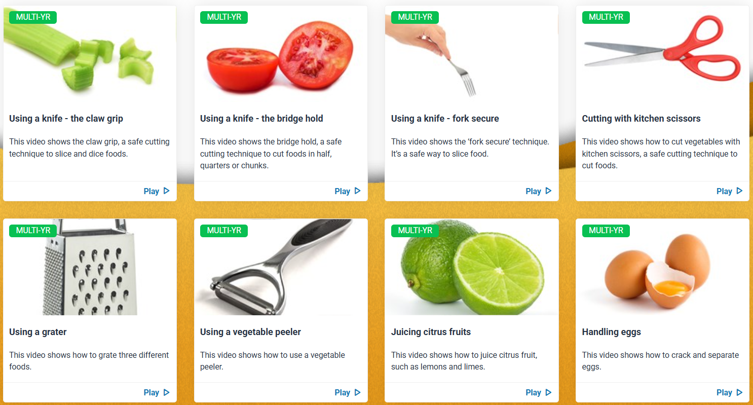 For practical food skills we have a selection of videos which can be used to showcase practical cookery skills to you or your students.