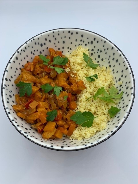 - Serve the tagine with quinoa as an alternative to couscous. Garnish with chopped coriander and mint and add some pomegranate seeds for colour and texture.