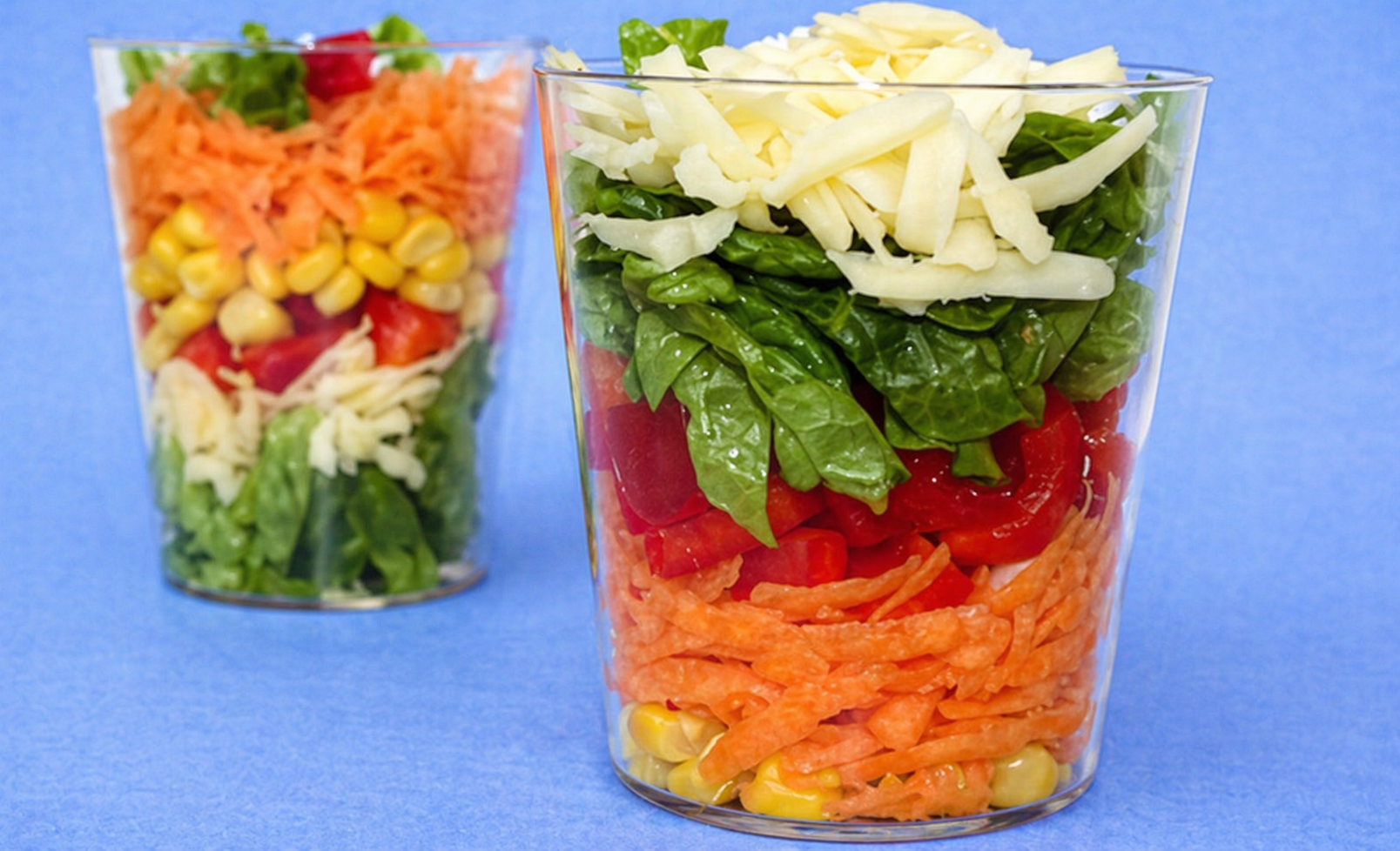 - Turn up the flavour: Try different flavour combinations in your salad pots. Other ingredients could be chopped cherry tomatoes, grapes or olives or grated courgette.