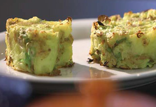 - While still warm, press this mix into a ring mould of your choice, e.g. a 9 cm ring, about 2 cm deep. Remove the ring and repeat this until all the potato has been used.