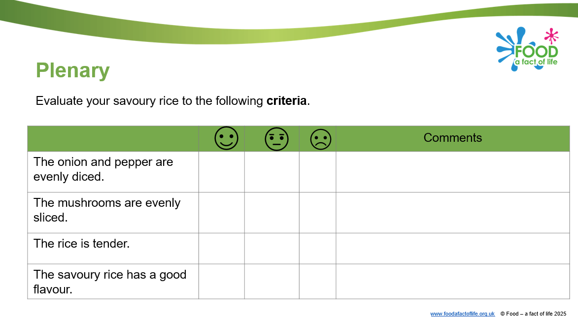 • Links to further resources and activities connected to the recipe or practical food skills used