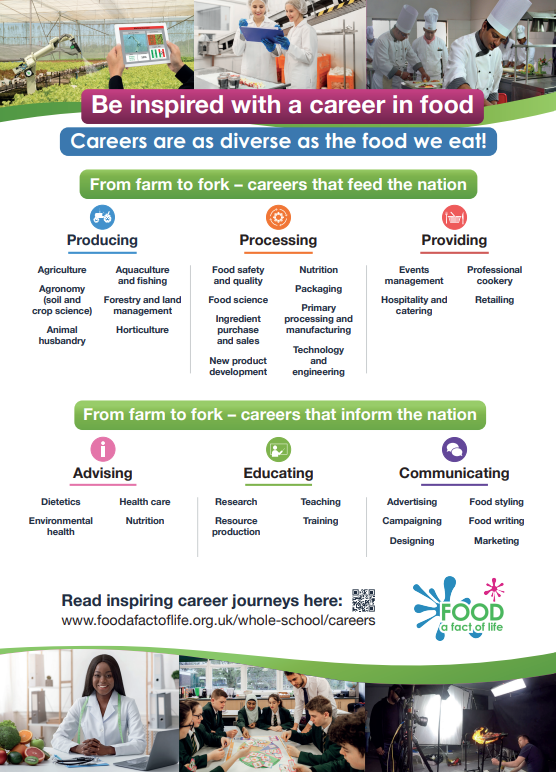 - help pupils see that interests in science, maths, technology and even social media and communications can lead to rewarding careers in food