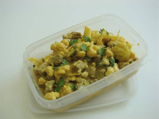 5. Add the lamb and cauliflower, cover and slowly cook for about 10 minutes.