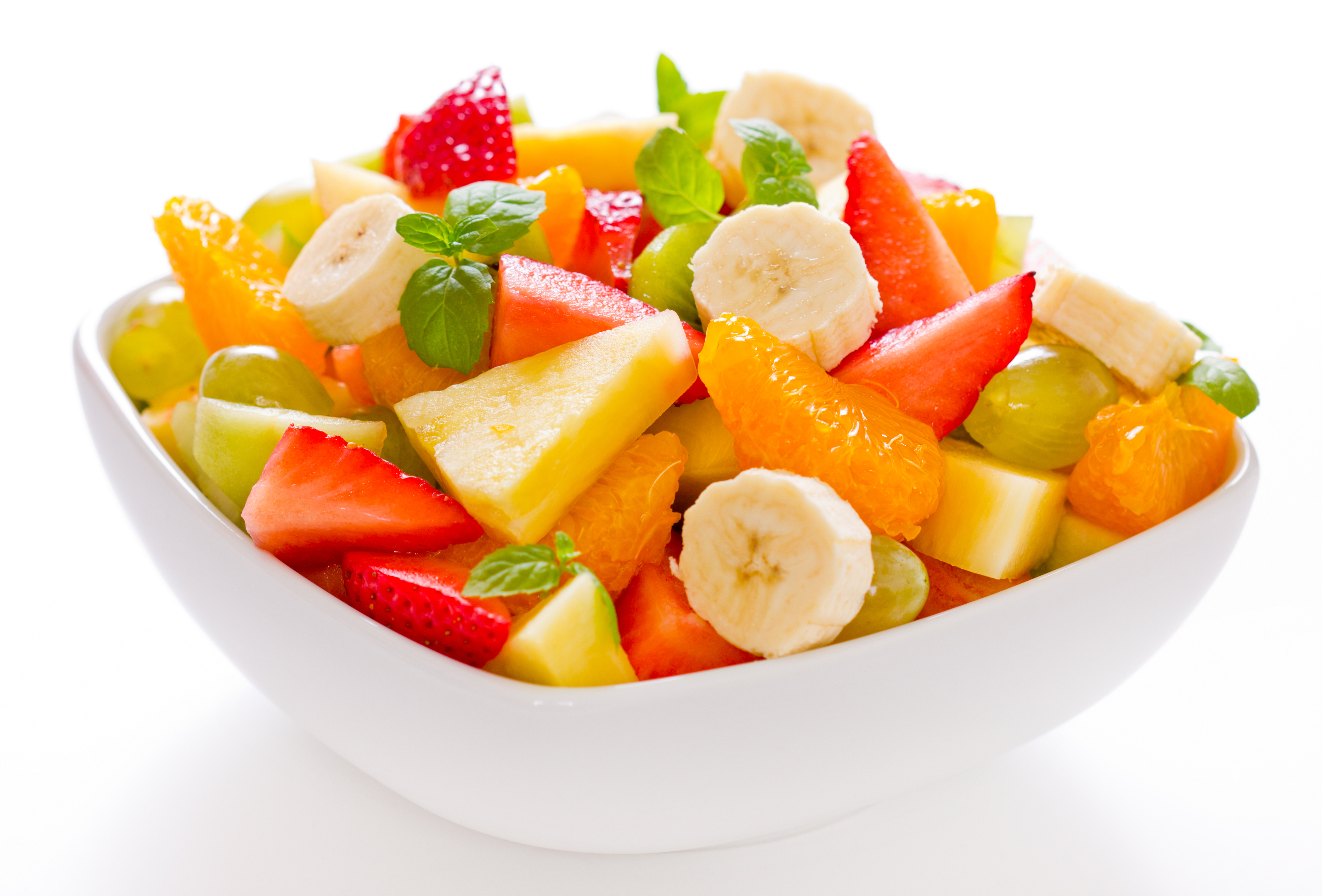 - Place all the fruit in the bowl and add orange juice.