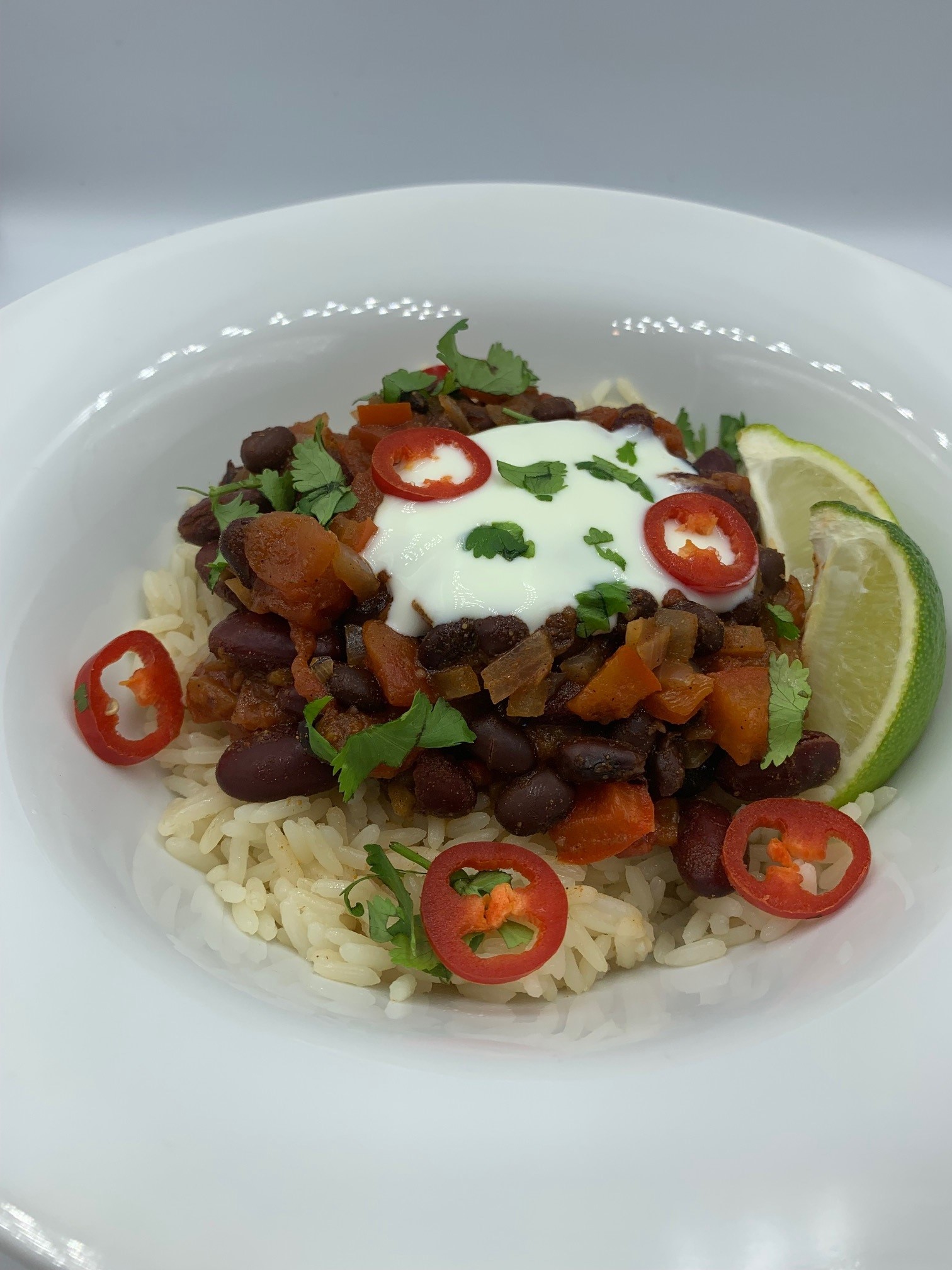 - Serve topped with the coconut yogurt alternative, coriander and chilli, with lime wedges and rice on the side.