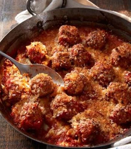 - Sprinkle the mixed cheese and breadcrumbs over the meatballs, place the pan under the preheated grill and heat for 3-4 minutes until the cheese melts and the breadcrumbs are golden and crispy. If the frying pan is not heatproof, transfer to a heatproof dish.