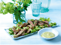 9. Pour a little of the sauce over the steak and salad and serve the remaining sauce in a separate bowl.