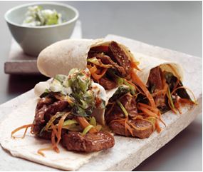 9. Place a spoonful of yogurt mixture on top before rolling up the flour tortillas.