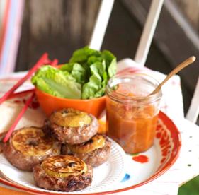 - The pork, apple and cheese wheels can be served with crusty, chunky bread slices, salad leaves and barbecue sauce.