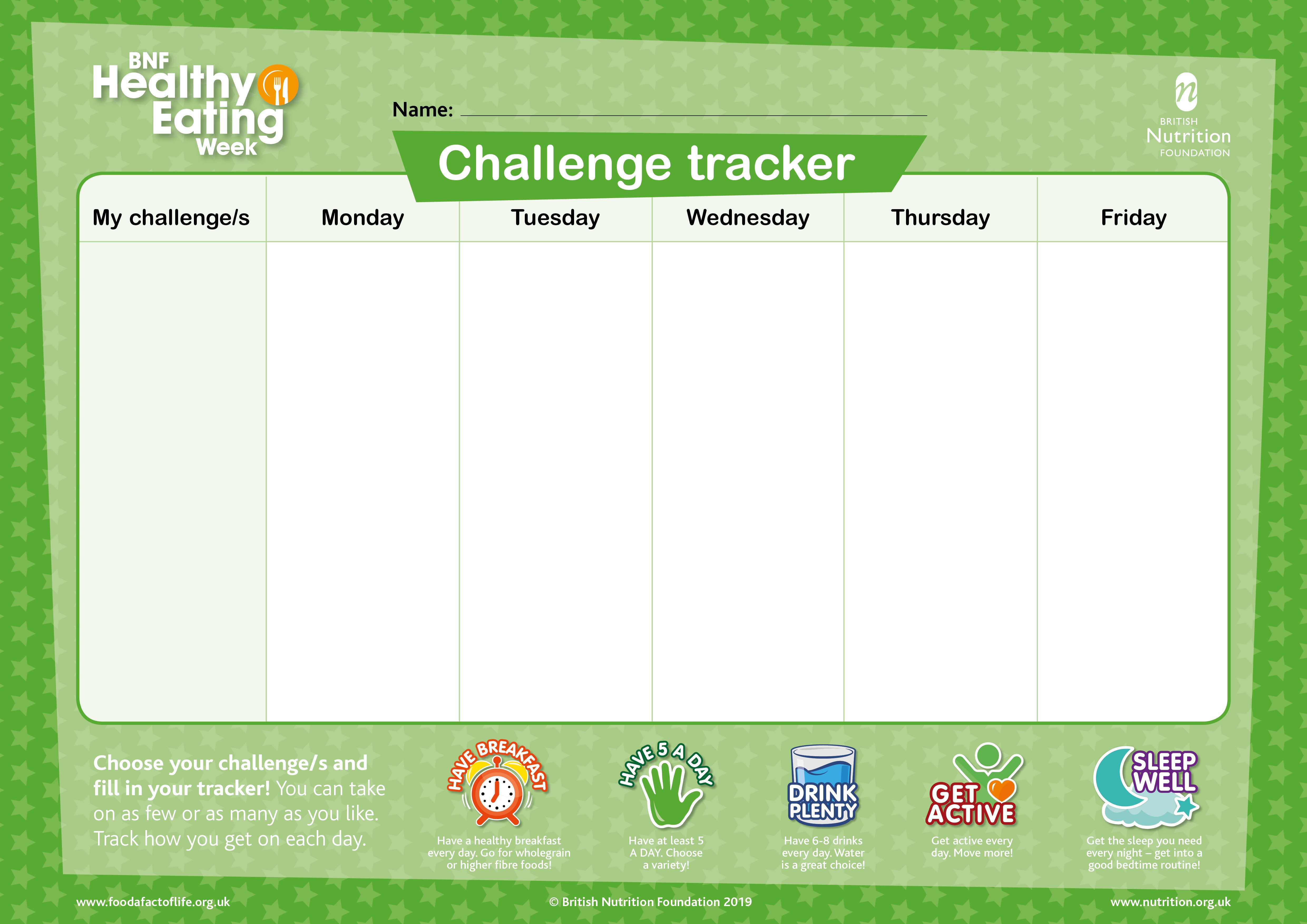 A tracker to monitor progress with one or more of the BNF Healthy Eating Week...